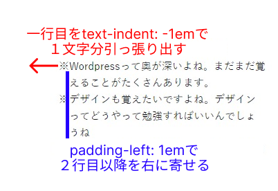 2行目以降を字下げすることで、文章が読みやすくなるよ