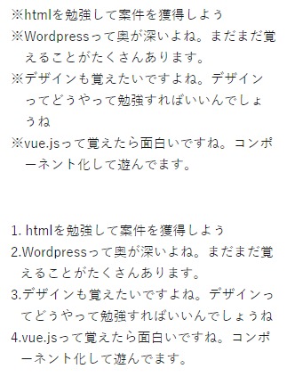 こういった※印を使った注意書きや、連番を使用したリストなど、コーディングを行っているときによく見ると思います。