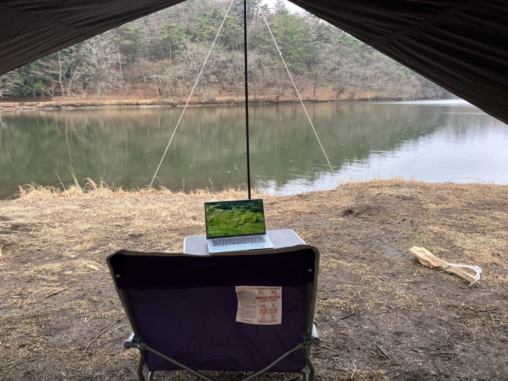 屋外にテーブルのあるキャンプ場もありますが、基本はテーブルなどは存在しないので、PCを置くテーブルを別途用意する必要があります。