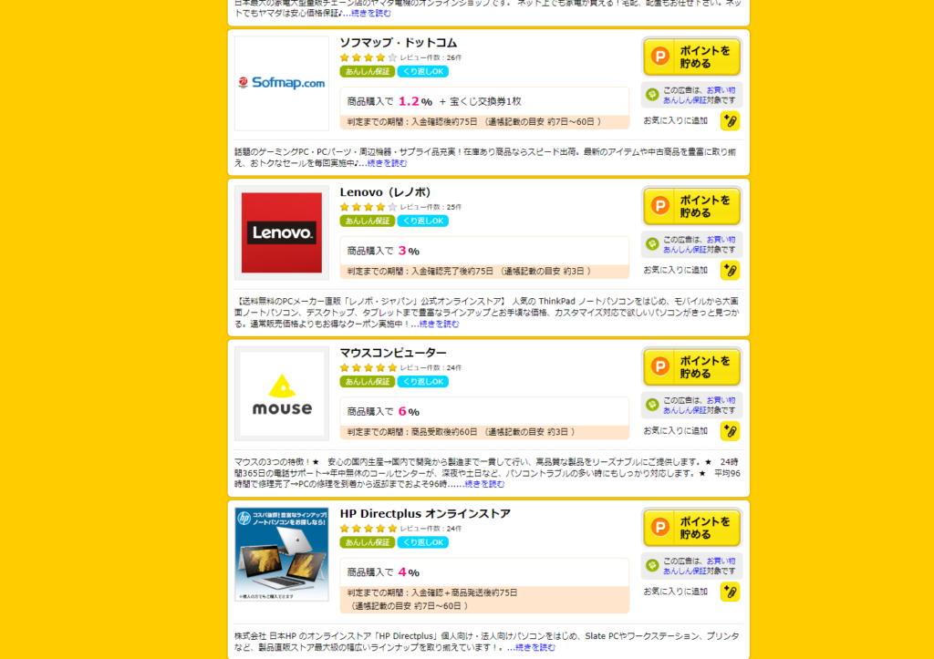 高還元ショップを探そう