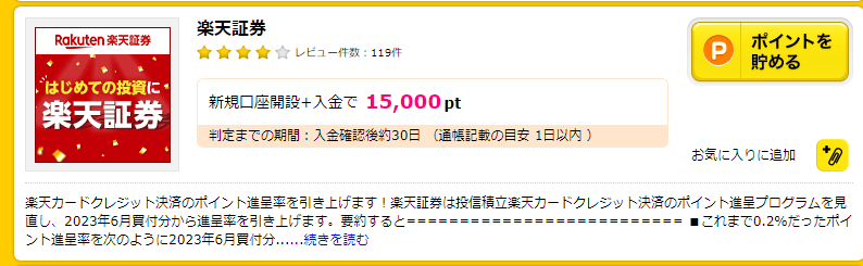買い物する以外にも、証券口座やクレジットカードの作成などでもポイントが貯まります。