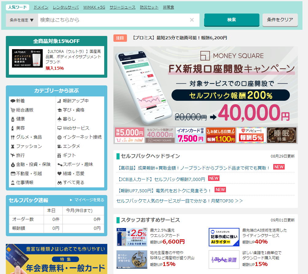 高額な物もあり、私はセルフバックのみで6万円ほど稼いでいます。
