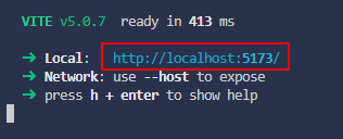 赤枠で囲んだ「http://localhost~」の部分のURLをブラウザで開きます。(ctr+クリックでも開きます。)